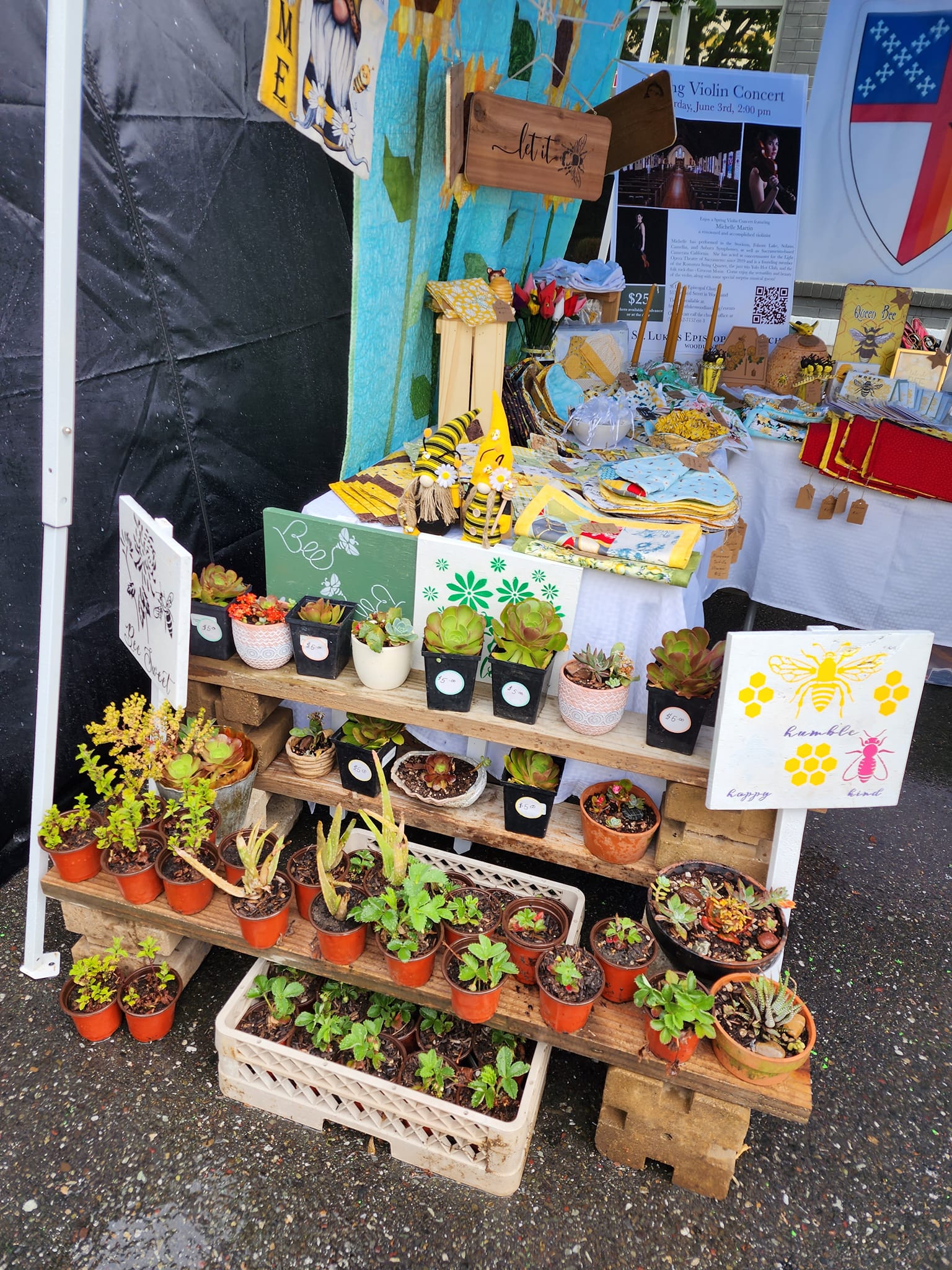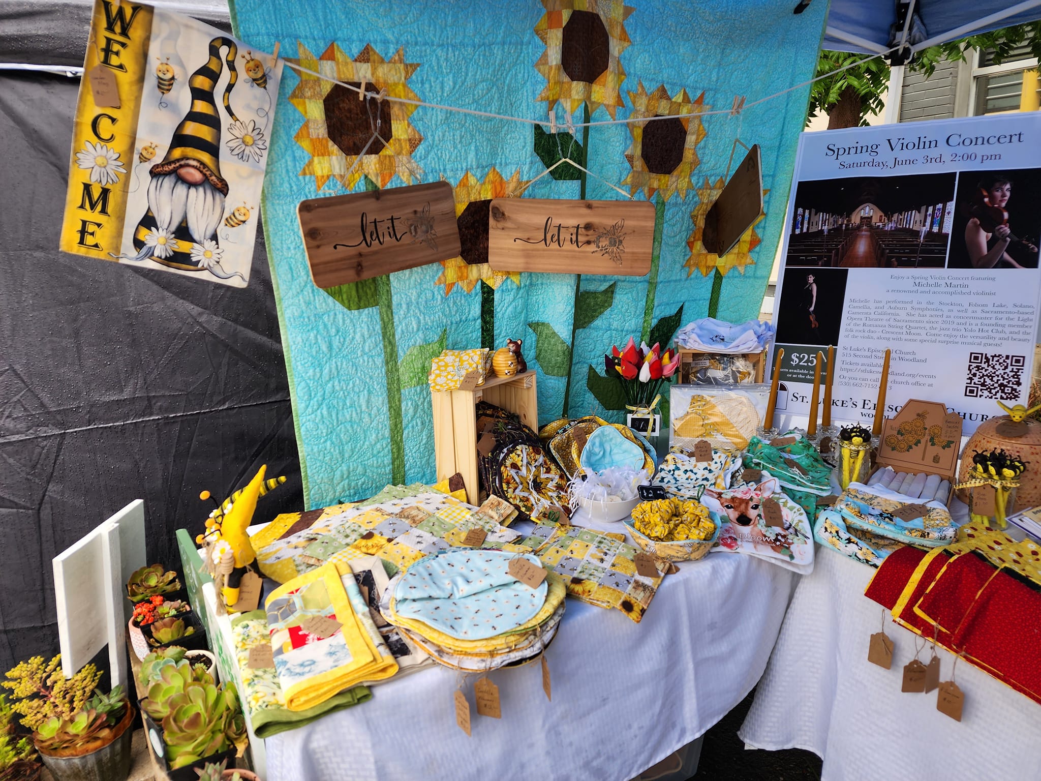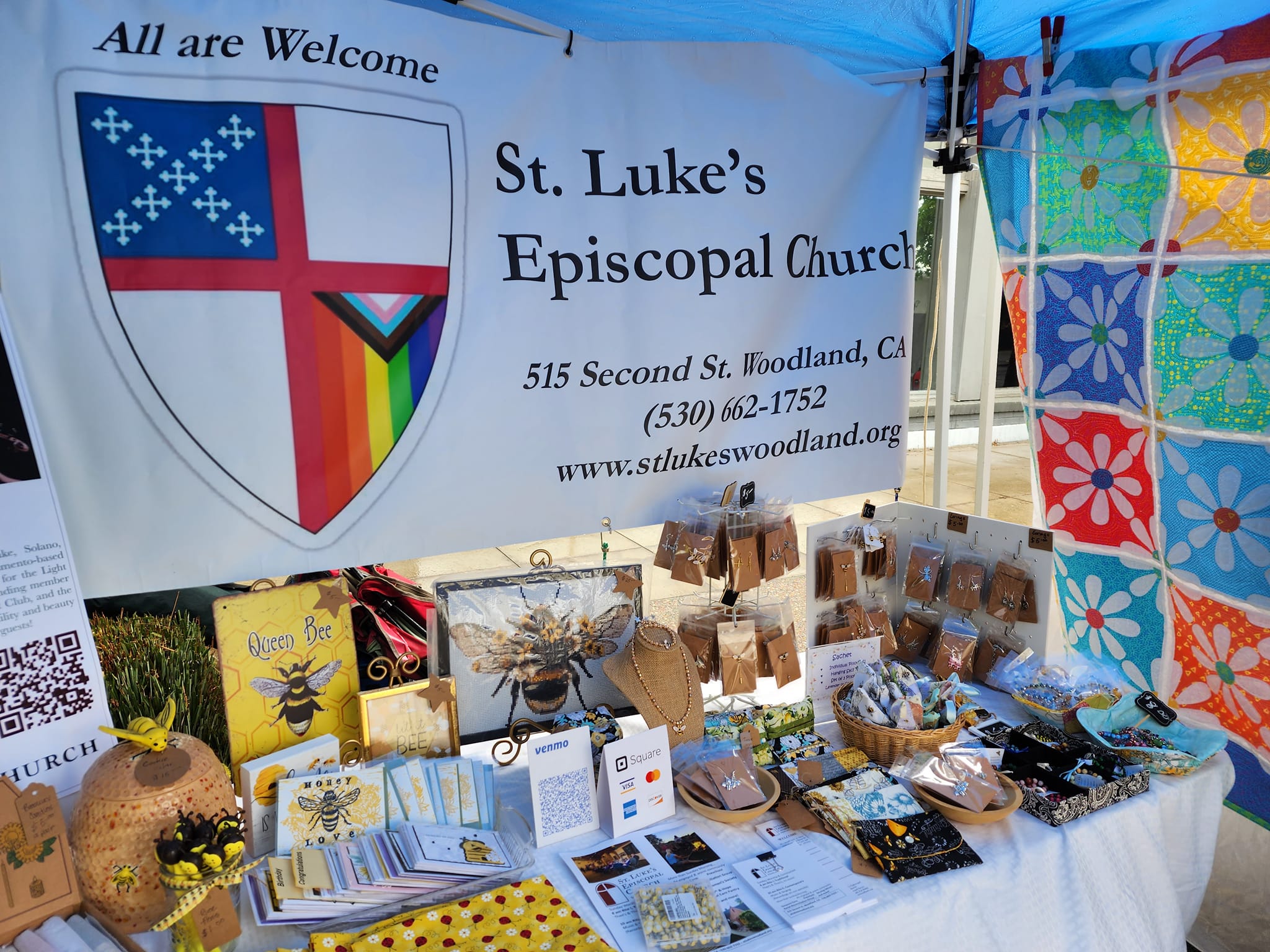 St. Luke’s volunteers braved wind and hale to meet our neighbors and staff our booth at the Woodland Honey Festival this year. Thank you to all volunteers who sewed, potted, beaded, and created to fill our booth and thank you to our volunteers who staffed the booth, help set up, and help clean up.
